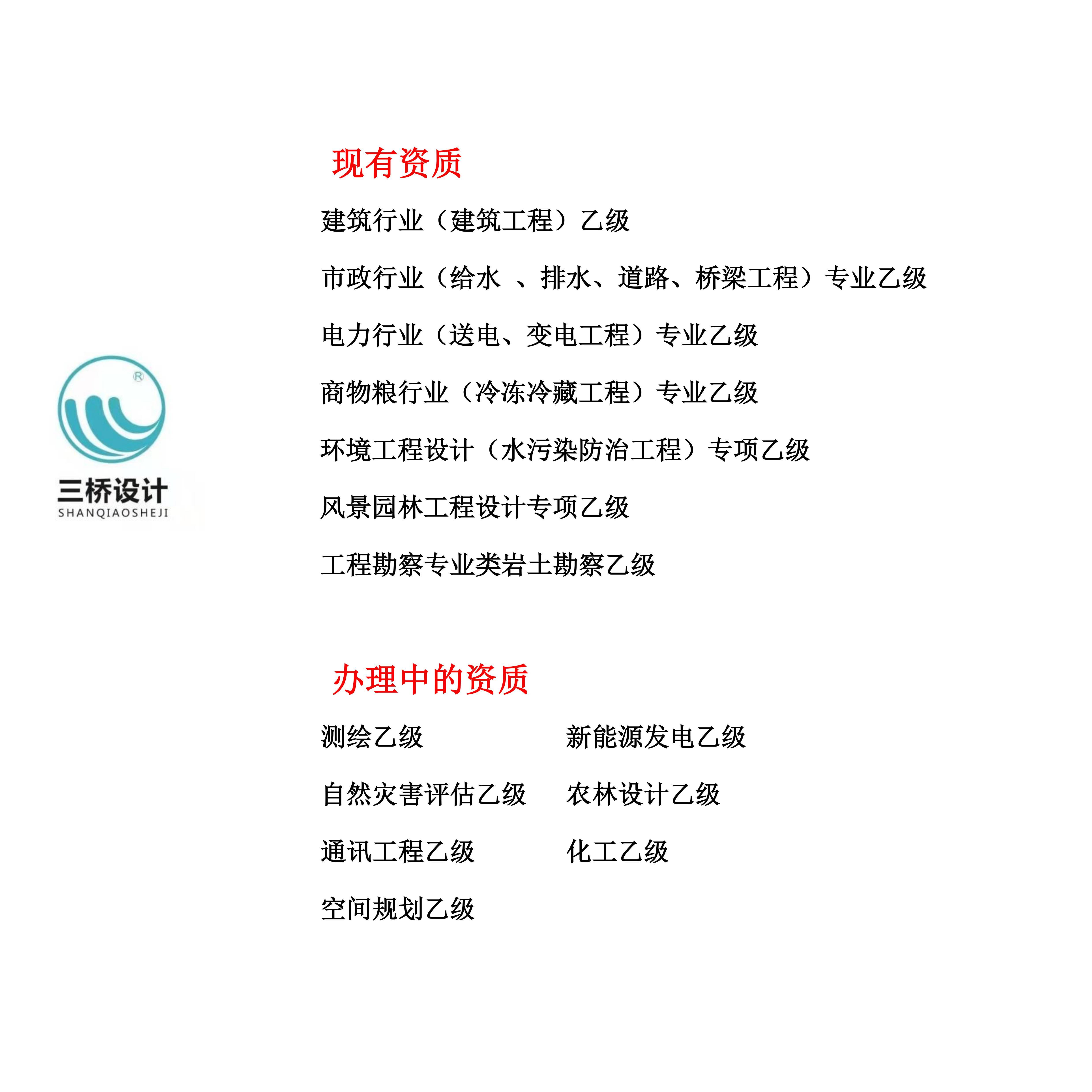 我院已完成河北、广东,山西,湖南、湖北、海南,黑龙江、江西,安徽,云南,山东,四川,贵州,新疆,甘肃,广西,浙江、福建、陕西,吉林,青海,宁夏,重庆的备案,其余各省备案也在进行中,建筑设计、市政设计、风景园林设计、电力设计、商物粮设计、农林设计、环境工程设、新能源发电设计、火力发电设计、通信工程设计等工程设计-项目合作-加盟分院均可!